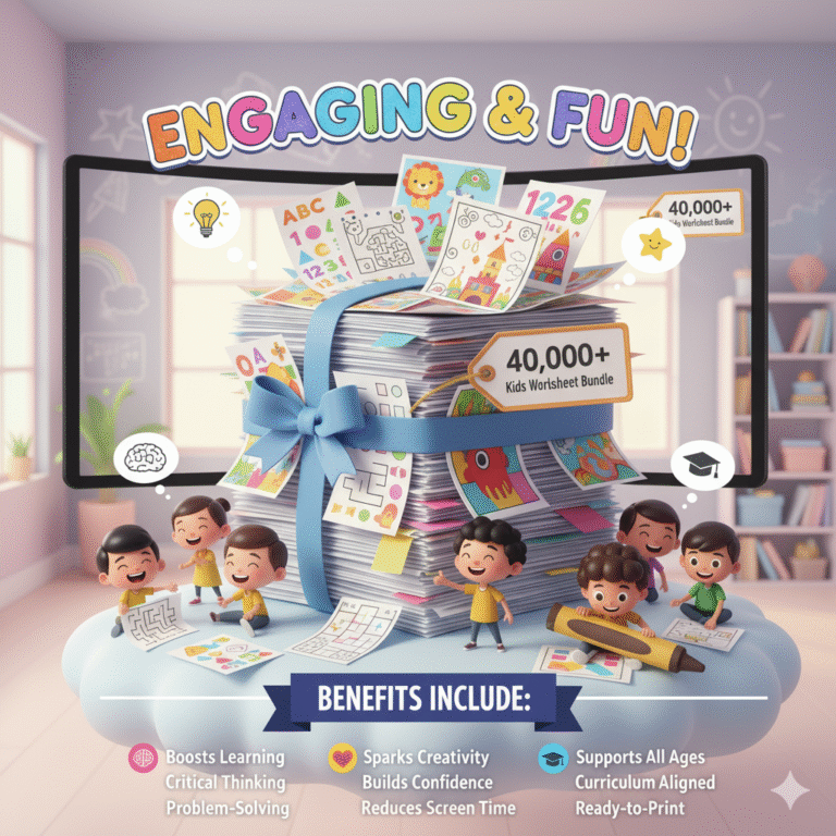 You’ll get fun and educational sheets covering Math, English, Science, Logic, Art, and more — all in PDF format, ready to print and use instantly.