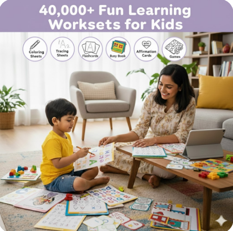 A lifetime supply of printable learning sheets covering every topic — from alphabets to science!